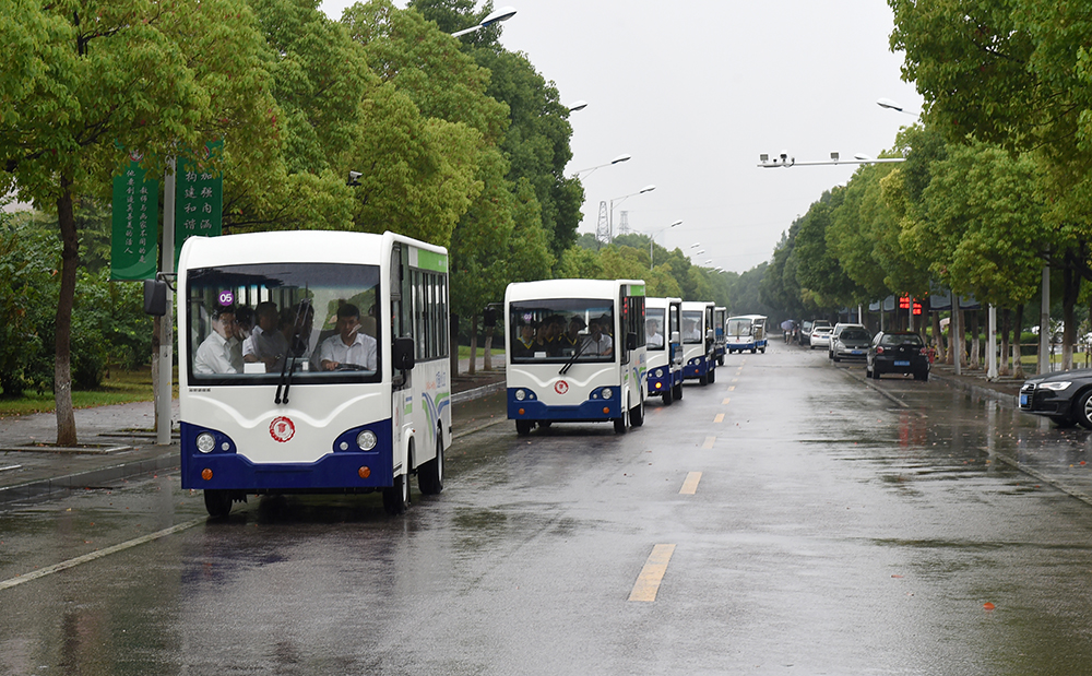 这几天,心细的师生会惊喜地发现,校园里多了几辆电动“观光车”,坐在车上,漫游在风景如画的校园,心情无比惬意。原来,这是学校为方便师生出行而推出的校园小公交,按时按点循环上路,使得偌大的校园一下子变得方便了许多。这一便捷周到和人性化的服务一经推出便受到师生的广泛关注和点赞。