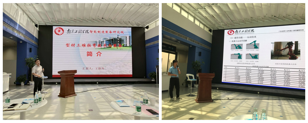 本次活动共推介了37个智能制造领域的项目,高校专家对其中的9个项目进行了现场路演,其中包括威尼斯官网智能制造装备研究院王保升博士的“型材三维拉弯技术与装备”和洪磊博士的“六自由度工业机器人离线编程系统”2个项目。“型材三维拉弯技术与装备”项目由辅助工艺系统模块、控制模块和拉弯机本体等部分组成。控制系统基于开放的软件平台开发,具有完整的自主知识产权,采用I/O与各种EtherCAT总线伺服连接方式,能够实现精确灵活的运动和位移控制,完成型材的精确三维拉弯成型。该拉弯设备拉弯设备系统具有良好的功能扩展性,满足成型复杂、多维、开放、智能的发展要求。“六自由度工业机器人离线编程系统”项目针对目前人工示教难以适应现代企业不同规格非标工件柔性加工需求,以目前工业上常用的六自由度机器人在焊接、打磨、喷漆等工业领域的离线编程应用为目标,采用VTK可视化技术,基于Visual Studio的Vc++平台实现自主开发。该软件具有参数化设置、人机交互性和功能可扩展性等主要特色。