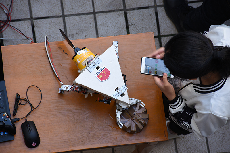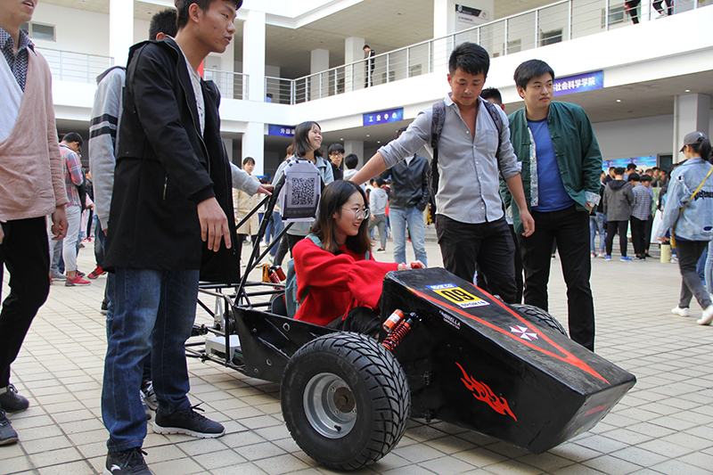 先进的理念和技术、新颖的展示素材,丰富的内容及成果,引起了大家极大地观展热情。这些作品涉及机械、材料、电力、自动化、建筑、经管、艺术设计、人文等多个学科门类。机械工程学院的“双足竞步机器人”,在展示现场自由的行走、立正、卧倒、起立、前后翻跟头等,获得了现场观众的一致好评与掌声;能源与动力工程学院的“可控硅全桥逆变变频无人机”与一般无人机相比,能实现悬停更稳定、负载能力更强的特性;材料工程学院的“连续抽滤型油污分离材料”获四项专利授权,在挑战杯、创青春及高分子材料等多项创新大赛中均取得不俗成绩;自动化学院的“基于三轴运动机构的大棚农业机器人设计”研发了一种基于三轴运动机构控制算法,开发了机器人平台移动控制算法和二维码识别算法,并基于OneNet云平台实现了农业机器人的数据实时监测;汽车与轨道交通学院的“ATV全地形可翻转行星轮组行驶机构”设计,通过翻转行星轮组来完成全地形车的越障和平地行驶;计算机工程学院的体感控制机械臂、建筑工程学院的“进蜕”、工业中心的智能水果采摘机器人、艺术与设计学院的“小黄鸡和他的朋友们”包装设计及衍生产品等以其精妙的构思、实用便捷的设计吸引了众多的参观者。