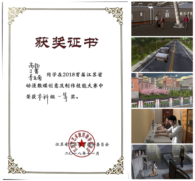 11月16日---19日,首届江苏省动漫数媒创意及制作技能大赛在南京工业职业技术学院举行。威尼斯官网艺术与设计学院贾涛老师指导,动画151班级高扬、丁雷、季亚南三位同学组成的代表队,荣获本科组一等奖。