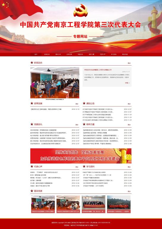 专题网站开设了“新闻动态”、“通知公告”、“改革发展”、“党建巡礼”、“榜样力量”、“代表心声”、“学习资料”、“图说党建”等栏目,全面整合了学校筹备第三次党代会各项工作的相关报道,全方位、立体式报道第二次党代会以来学校各项改革和事业发展取得的显著成绩,重点报道学校在党建和思想政治教育方面所取得的成绩和特色工作,以及省级党建创新、先进基层党组织、优秀共产党员的先进事迹等。网站同时将对第三次党代会筹备过程进行全程报道,及时传递与会代表们的心声,欢迎广大师生代表踊跃投稿!