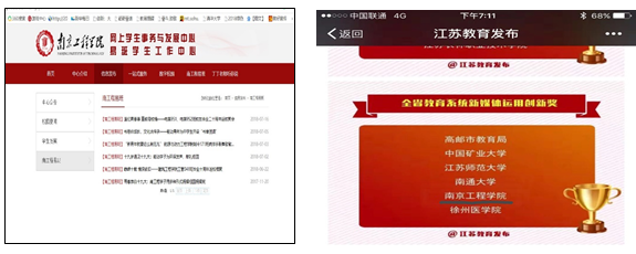 巩固思政教育传统阵地的同时,学校积极构建网络思想政治教育平台。作为江苏省首批易班试点十大高校之一,积极打造线上+线下“南工程易班工作站”;着力构建“学校、二级学院、班级、学生组织、个人自媒体”五级参与的全覆盖网络平台,打造新媒体矩阵,唱响网上主旋律,2015年威尼斯官网获评江苏省教育系统新媒体运用创新奖。