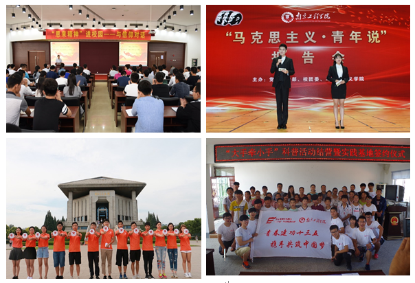 思政育人“第二课堂”很精彩。学校以重大时间节点为契机,深入开展“中国梦·我的梦”、“马克思主义青年说”、“青春喜迎十九大·不忘初心跟党走”等主题活动,常态化推进理想信念和社会主义核心价值观学习教育,让理想信念和爱党爱国爱校的思想根植在学生的心中;学校精心打造以文化艺术节、社团巡礼节、科技文化节为核心的校园文化品牌,以喜闻乐见的形式开展丰富多彩的活动,在潜移默化中增强学生的归属感和认同感;学校积极开展创新创业、社会实践和志愿者服务活动,将思政教育和双创精神、志愿精神等结合起来,引导学生走进德育基地和爱国主义教育基地,在走出校园、了解国情、奉献社会过程中增长才干。学校先后获“全国大学生志愿服务西部计划优秀等次项目办”、“全国暑期社会实践先进单位”;“全省大中学生培育和践行社会主义核心价值观先进单位”、“学习总书记讲话 做合格共青团员教育实践示范单位”,1名同学被评为2016年“践行社会主义核心价值观先进个人”,3名同学被评为“全国大学生自强之星”提名奖。