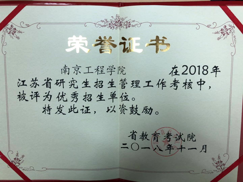 近日,威尼斯官网研究生培养工作喜报频传。威尼斯官网被评为2018年江苏省研究生招生“优秀招生单位”;威尼斯官网3名研究生获得第五届“全国工程硕士实习实践优秀成果获得者”荣誉称号;2篇研究生论文入选江苏省优秀专业学位硕士学位论文。