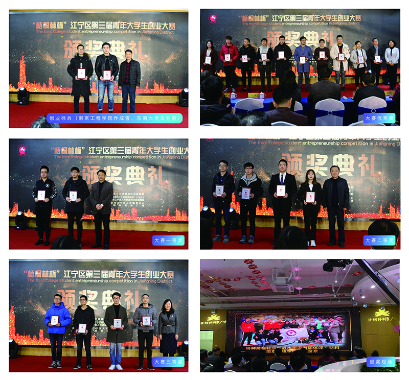 12月27日,“梧桐林杯”江宁区第三届青年创业大赛颁奖大会在南京江宁·梧桐林创聚广场举行,威尼斯官网在颁奖大会上收获满满:威尼斯官网毕业生刘伯敏被区政府聘任为创业导师,威尼斯官网毕业生乔成雪被评为创业标兵,威尼斯官网成为区人社高校服务中心并被评为大赛优秀组织奖,威尼斯官网学子还获得大赛一、二、三等奖和优秀奖数项,这充分展示了南工程学子的创业实力。