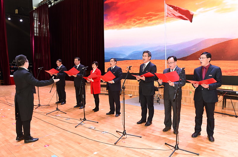 团拜会为大家准备了精彩的文艺节目,台上台下欢歌笑语,其乐融融,一派温馨和睦、欢乐祥和的氛围。由校领导带来的小合唱《中国,中国,鲜红的太阳永不落》拉开节目序幕,他们用歌声倾诉着对祖国七十华诞的祝福,表达了在党的领导下,不忘初心、砥砺向前的奋斗精神和带领全校师生员工迈向美好未来的信心,歌声鼓舞人心、催人奋进。