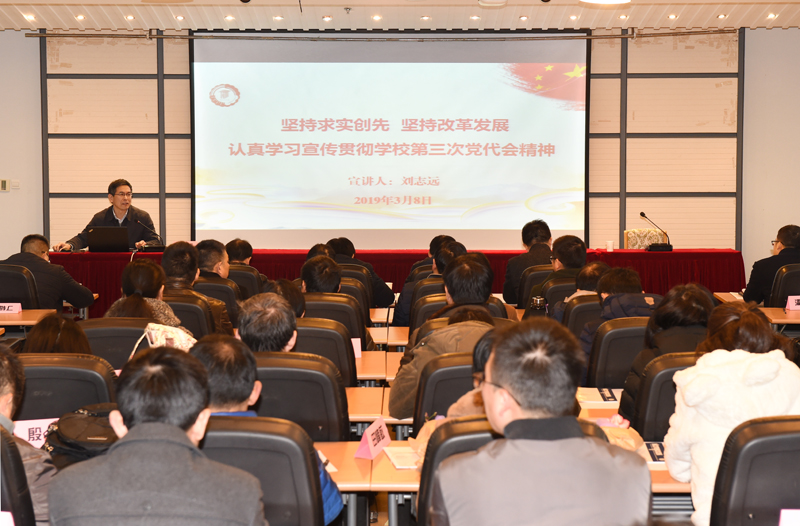 为深入学习贯彻学校第三次党代会精神,3月8日中午,校党委副书记刘志远在至勤楼·行政中心学术报告厅为能源与动力工程学院全体教职工作了题为“坚持求实创先,坚持改革发展,认真学习宣传贯彻学校第三次党代会精神”的宣讲。会议由能源与动力工程学院党委书记张祚键主持。