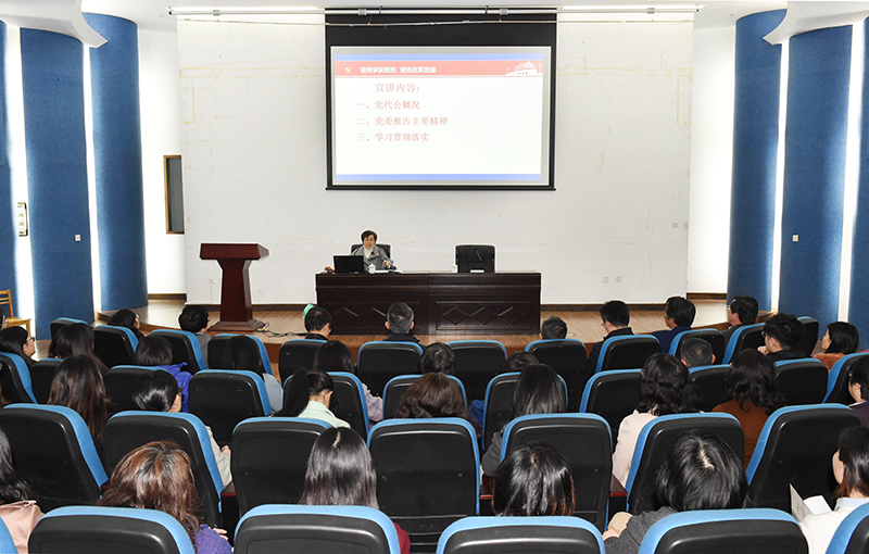 曹雪虹副书记从第三次党代会概况、党委工作报告主要精神及如何学习贯彻落实第三次党代会精神三个方面展开宣讲,她深入浅出地介绍了校第三次党代会的要点、内涵,总结回顾了过去五年学校各项事业发展所取得的成绩,分析了当前学校面临的形势,明确了未来发展目标、思路及今后一段时期的主要任务,阐释了如何全面加强党的建设。她指出,要通过认真学习党代会报告,深刻领会学校第三次党代会的主题,深刻领会立德树人的根本任务和推进学校高质量发展的核心目标,深刻领会今后学校发展的三个阶段部署安排、两个坚持、三大改革和六个高质量发展和六项主要工作任务,深刻领会全面加强党的领导和党的建设的新要求和新任务。