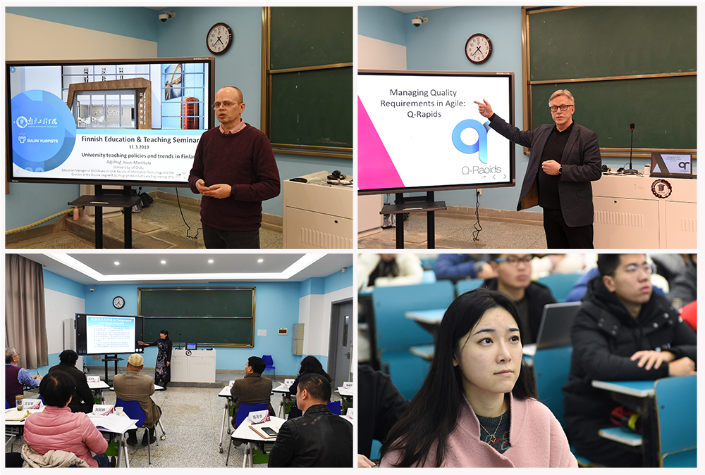 来自奥卢大学的Jouni Markkula教授介绍了芬兰的大学教学体系、教育政策和趋势,着重阐述了奥卢大学的教育方法和学习环境。他说,在奥卢大学,整个教育教学过程是以学生为中心、以教师为主导的。课堂是学生展现思维的舞台,学习是学生带着已有知识、经验、灵感和兴趣参与探究的历程,教师通过情景设置、课题引入等方式激发学生进入学习的“有我”之境。教师具有较高的自主性,任课教师根据学生的发展需要以及布鲁姆的目标分类理论进行课程教学设计与内容组织、教学进度安排、考核方式设计等。Jouni Markkula教授在讲解以及与现场老师的互动中,提到最多的一个词就是“自主性”,当然这从他的言谈举止、课件风格也可以获得切身体会。
