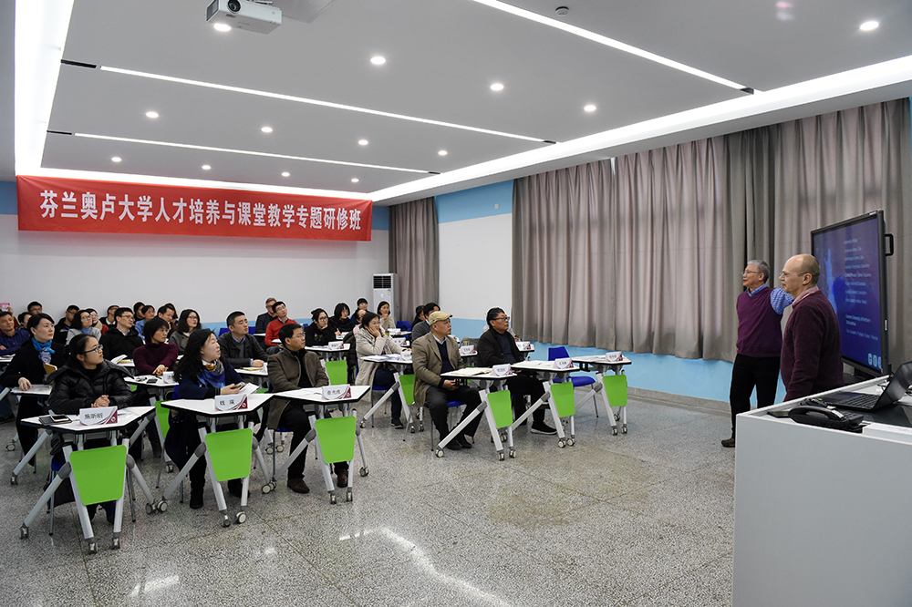 连续两天的观摩和采访让我们看到,中外专家教授的智慧大大拓宽了大家的视野,冲击了课堂教学的固有思维。据了解,此次研修班将延续一个月的时间,研修内容包括中外双方教师的经验分享主题报告、奥卢大学教授的公开观摩课、互动交流研讨等几大模块。教务处、教师教学发展中心相关负责人表示,希望老师们能以研修班的学习为契机,结合我国高等教育和学校教育教学改革的要求、发展趋势,深刻理解“学生中心、成果导向、持续改进”的理念,加深对学校教育教学改革举措的理解;希望参培老师结合奥卢课程教学做法,理解内涵、活学活用,积极投身理实一体化课程、项目化课程等新型课程建设,关注雨课堂、云班课、学习通等学习空间平台,加快现代教育技术和信息技术在课程教学中的应用,推进课堂革命,创建高效的、生动的课堂。