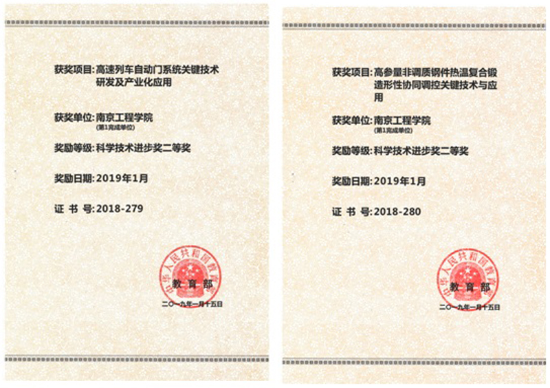 近日,教育部发布了《关于2018年度高等学校科学研究优秀成果奖(科学技术)奖励的决定》,威尼斯官网史翔老师主持的项目《高速列车自动门系统关键技术研发及产业化应用》、王章忠老师主持的项目《高参量非调质钢件热温复合锻造形性协同调控关键技术与应用》均获得科学技术进步奖二等奖,创威尼斯官网最好成绩,居全国同类高校前列。