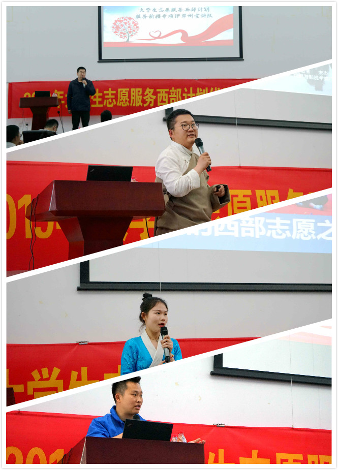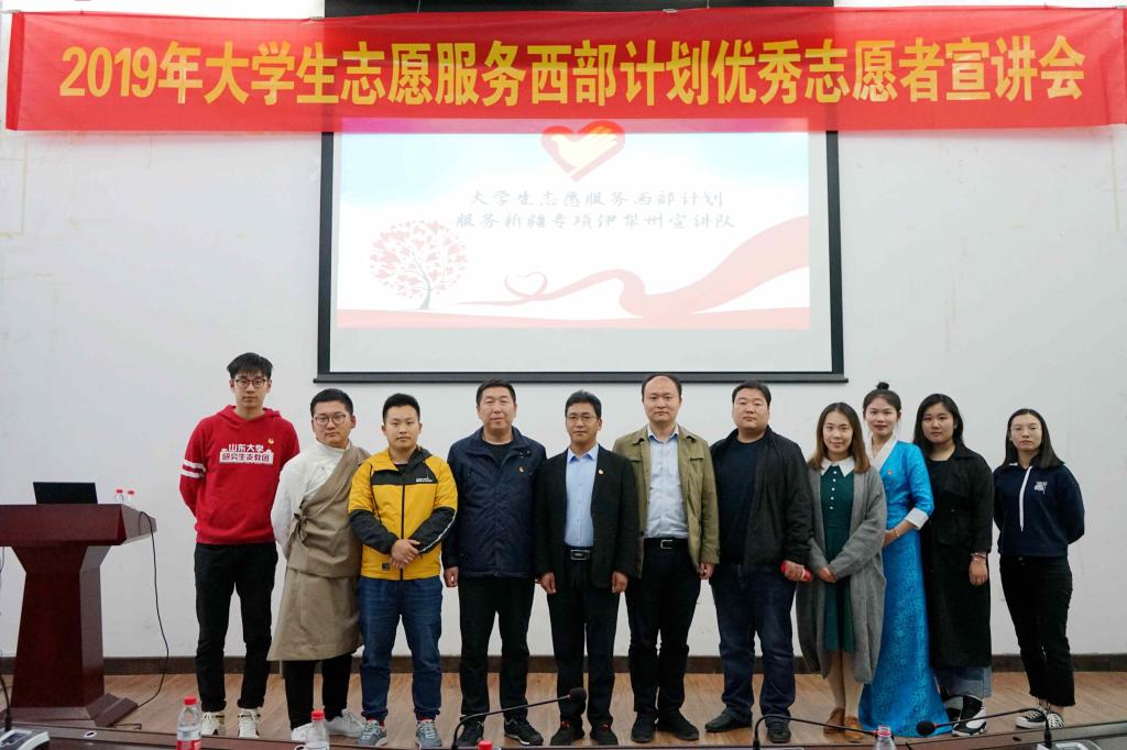 按照团省委的统一部署,4月15日下午,西部计划西藏专项宣讲团一行7人,新疆伊犁自治州宣讲团一行3人在威尼斯官网文博苑·逸夫图书信息中心二楼学术报告厅举行了2019年大学生志愿服务西部计划宣讲会。校团委负责人以及200余名即将毕业的各专业学生代表参加了宣讲活动。