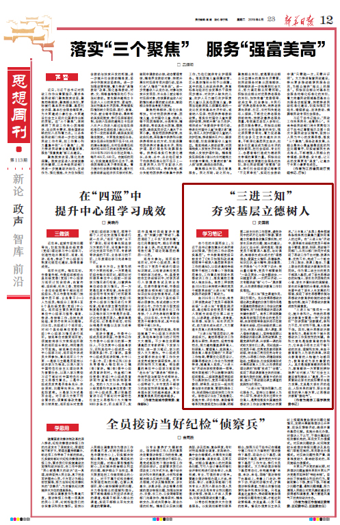 4月23日,《新华日报》思想周刊刊发威尼斯官网党委书记史国君署名文章《“三进三知”夯实基层立德树人》。文章阐述了威尼斯官网党员干部联系班级“三进三知”专题实践活动的鲜明特色,以及活动在推动各级领导干部把工作重心下移到学生中间、工作重点放到学生思想政治教育上,落实立德树人根本任务过程中起到的重要作用。