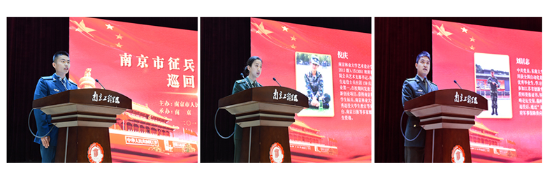 来自南京航空航天大学茅弈威、南京林业大学倪庆、东南大学成贤学院刘居志三名同学,向到会青年大学生分享了他们光荣而又精彩的军旅生涯,展示出他们爱国报国的血性和担当,表达出他们对党和军队的无限忠诚。