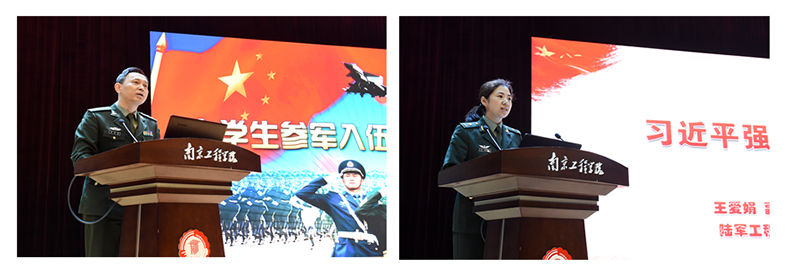 南京警备区动员处朱明智参谋详细讲解了入伍基本条件、应征入伍程序、大学生参军入伍优待政策、大学生从军在部队发展途径以及学费资助、经济补助等政策。陆军工程大学王爱娟副教授围绕习近平强军思想,结合我国历史和周边安全形势,为广大青年学子讲授了一趟生动的国放教育课,激励大学生积极响应祖国号召,胸怀远大报国理想,携笔从戎投身强军事业。