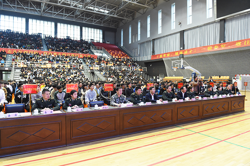 4月26日上午,由南京市人民政府征兵工作办公室主办,威尼斯官网承办的南京市征兵宣传进高校首场巡回宣讲在威尼斯官网体育中心主馆举行。威尼斯官网党委常委、副院长张仰飞出席并讲话。南京市委常委、南京警备区政治委员张宁、南京警备区政治工作处主任缪志刚、南京市江宁区副区长谢从军、南京市江宁区人武部政治委员张金星以及南京市各区人武部干部、14所高校师生代表共3000多人参加了宣讲会。