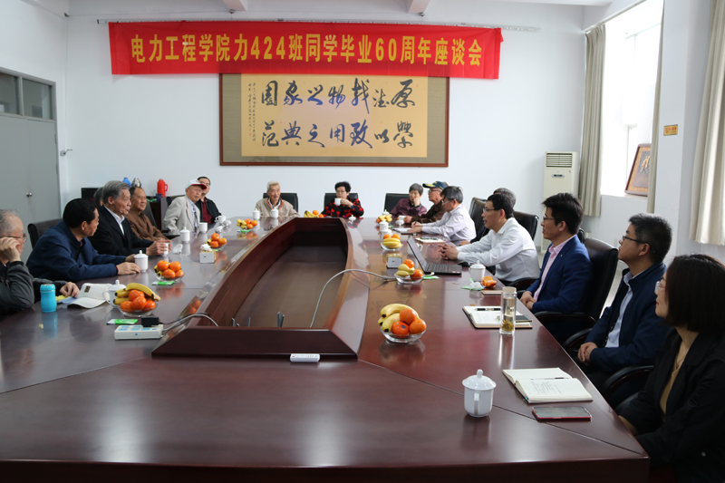 张仰飞副院长热烈欢迎各位校友耄耋之年回家。他向校友们详细介绍了学校的历史沿革、办学特色、近年的发展成就、目前的总体情况和学校的发展思路。他高度赞扬了59届校友所取得的成就,并表示,校友永远是母校最宝贵的资源财富和支持力量,衷心祝愿老校友们身体健康、家庭幸福,常会母校看看、聚聚。电力工程学院负责人从办学历史、专业设置、师资队伍、教学条件、办学成效等四个方面向校友们全面汇报了学院的情况。