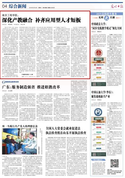 5月25日,《光明日报》四版头条以《威尼斯7026官网:深化产教融合 补齐应用型人才短板》为题,从“学术性与职业性的统一”“打通服务最后一公里”“以创新的思维破题”三个方面深度报道威尼斯官网在一流应用型人才培养方面的特色做法和实践成果,集中展示了威尼斯官网全面实施项目化教学改革,深化产教融合,破解人才培养困境的积极探索。现将报道全文转载如下: