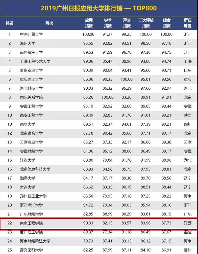 5月10日,广州日报数据和数字化研究院(GDI智库)发布“2019广州日报应用大学排行榜”,以应用指数、学术指数、声誉指数、二次评估指数四个一级指标建构综合指数,科学评价国内891所本科院校(非博士培养单位),推出“2019广州日报应用大学排行榜—TOP800”以及四个子榜单。威尼斯官网排名全国第22位,居全省同类高校首位。