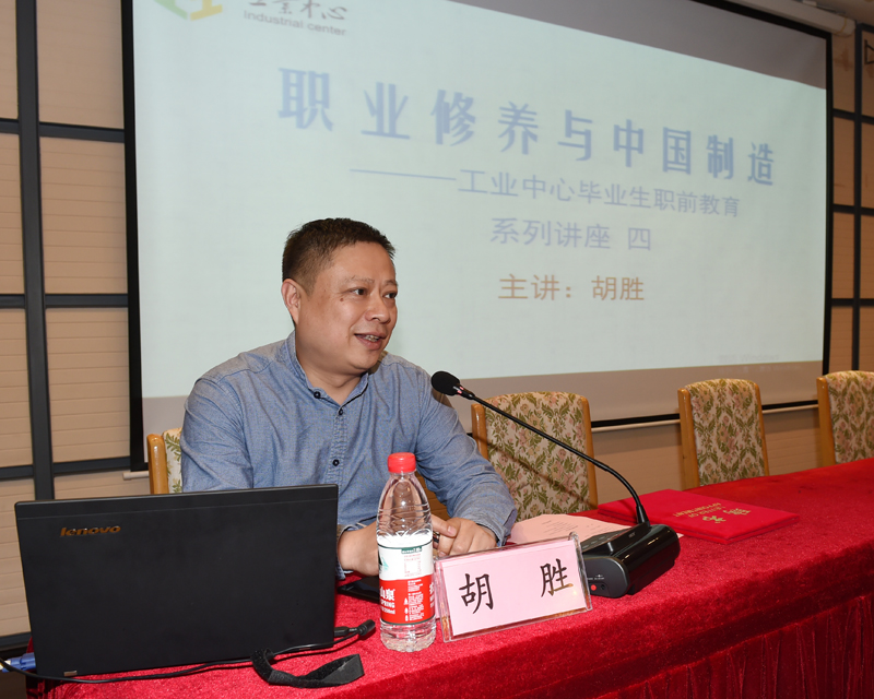 聘任仪式结束后,胡胜教授为现场同学做了题为“职业修养与中国制造“的报告,该报告也是工业中心针对2019届毕业生开展“职前教育”的第四讲。胡教授以”中国制造“的时代背景为切入点,结合自身专业发展实践告诉同学们,“守住初心,耐住寂寞,坚持专业发展”是成为优秀工匠的重要途径,成功的根本在于坚持。他指出,中国制造与世界先进国家的先进水平还存在差距,国家正需要大量的不仅拥有高超技能而且具备完善综合素质的高级工匠人才。他还从坚持理论学习、学会融入团队、养成好的个人习惯、敢于担当责任和善于科学职业规划这五个角度鼓励同学们主动适应时代要求,早日把自己锻造成“大国工匠”。胡教授的报告既有深入的说理,也有生动的案例,深深吸引了同学们,报告会现场气氛热烈。