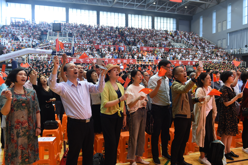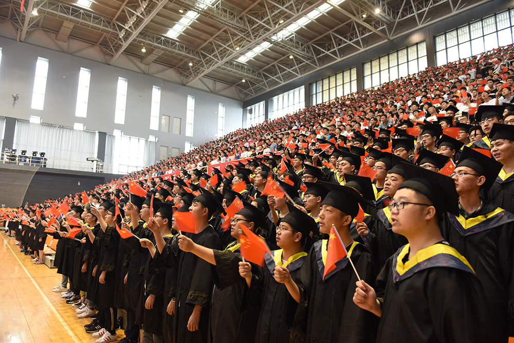 6月,青春,为祖国歌唱!在毕业典礼开始前,现场3000多名毕业生和他们的家长共同起身,挥舞着小国旗,齐声合唱《歌唱祖国》。“五星红旗迎风飘扬,胜利歌声多么响亮;歌唱我们亲爱的祖国,从今走向繁荣富强。”嘹亮的歌声响彻体育中心,即将奔赴祖国各地、投身祖国建设事业的学子们用歌声传递深深爱国情,传递为祖国和人民奉献青春的使命与担当。