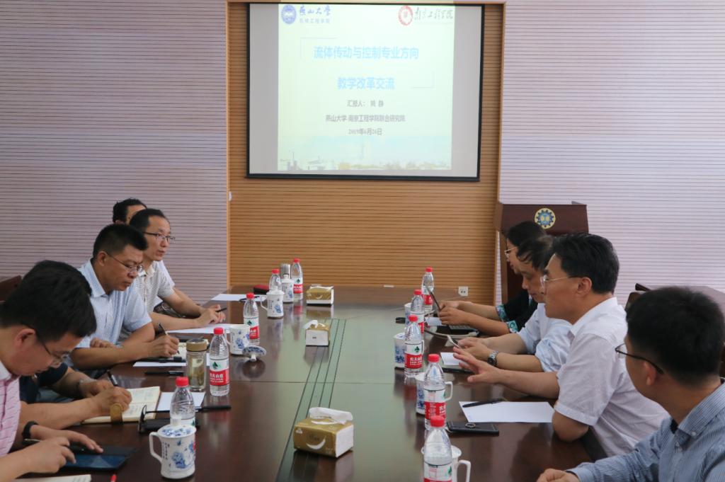 会上,燕山大学机电控制工程系主任姚静教授详细介绍了燕山大学流体专业方向的教学体系和教学改革举措,尤其是开展CDIO项目教学的实操及经验;孔祥东教授就威尼斯官网流体传动与控制专业方向目前的教学内容与相关负责人进行深入交流,并对课程项目教学安排、学生考核标准、专业综合实践和毕业设计等教学环节提出具体建议。