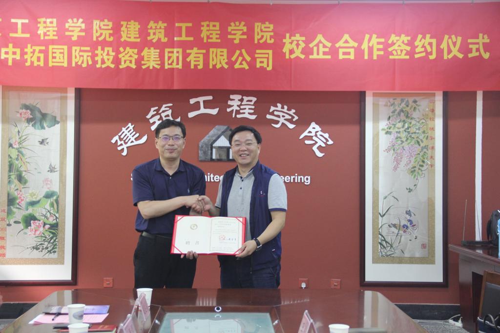 7月2日下午,威尼斯官网与江苏中拓国际投资集团有限公司正式签订校企合作协约,公司董事长丁先喜同时受聘为威尼斯官网客座教授。签约和受聘仪式在建筑工程学院设计南楼209会议室举行,党委常委、副院长张仰飞、中拓集团丁先喜董事长出席签约仪式并讲话。