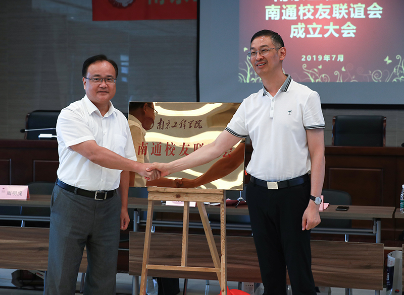 杨征宇副院长和新当选会长吴建新共同为南通校友联谊会揭牌。