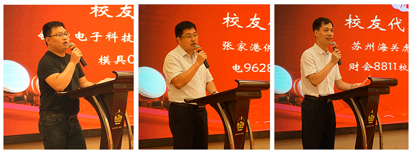 校友代表刁红文、任孝峰、田建新在发言中表达了对母校精心培育的感激之情,一致认为苏州校友联谊会的成立终于让广大苏州校友有了一个感恩恩师、回馈母校的纽带,有了一个合作交流、携手发展的平台。他们表示将以联谊会这个新平台为桥梁,相互勉励,相互支持,与母校携手并肩,共创美好的未来。