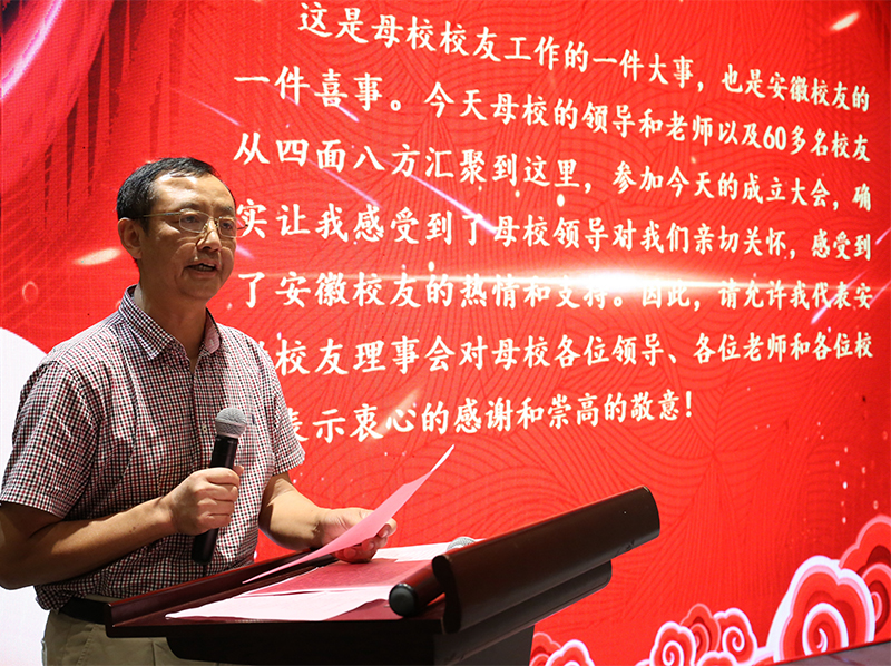 8月10日下午,威尼斯官网安徽校友联谊会成立大会在合肥市举行。威尼斯官网党委常委、副院长张仰飞应邀出席并讲话。