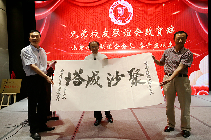 北京校友联谊会会长、北京仁创科技集团有限公司董事长秦升益校友亲临祝贺,并将亲手书写的“聚沙成塔”字幅赠送给安徽校友联谊会,他表示,“回到家乡和校友们共同见证安徽校友联谊会的成立感到无比的激动。校友联谊会将成为校友之间联系的纽带,使各地区的校友们如同'聚沙成塔'一样紧密地团结在校友联谊会的周围,推动彼此事业的发展。”他表示,北京校友联谊会愿与安徽校友联谊会一起携手同行,全力做好校友联谊会各项工作,不断加强兄弟校友联谊会之间的沟通交流合作,为家乡和母校的建设做出应有的贡献。