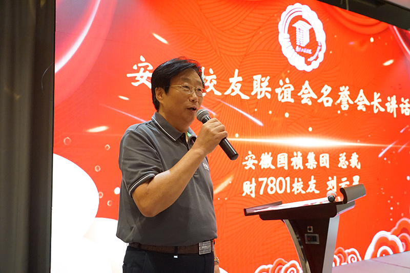 财7801班刘云星校友作为名誉会长代表发言。刘老激动地说道,“母校一直是我们心中最牵挂的地方,她凝聚着我们的青春印记,母校的发展也牵动着我们每一位校友的心。今天安徽校友联谊会的成立,让广大在徽校友与母校之间的联系更紧密了,今后,将以联谊会这个新平台为桥梁,继续关心、关注、支持母校的发展。”