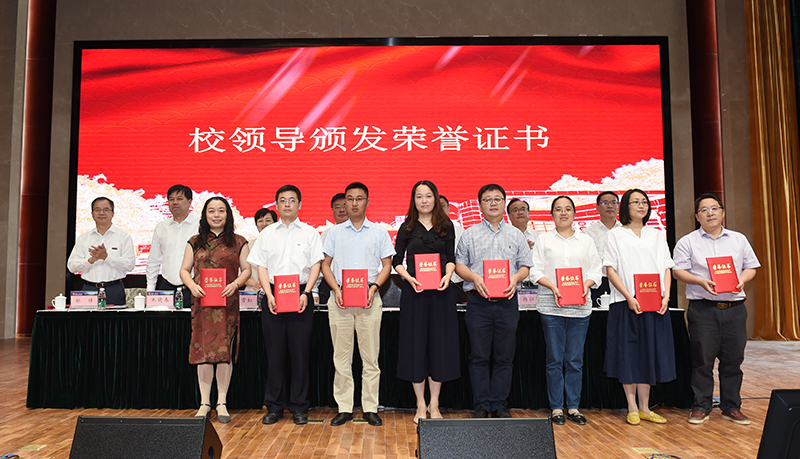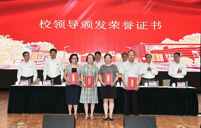 在热烈的喜庆气氛中,大会对从事教育工作满三十年的同志、获得各类“奖教金”的教师、获得各类省级人才称号的教师、获得2017/2018~2018/2019学年“三育人”先进个人和先进集体进行表彰,党委常委、副院长杨征宇,党委副书记、副院长曹雪虹先后宣读了表彰决定,与会校领导为获奖集体和个人颁发了奖牌和荣誉证书。无论是兢兢业业数十年的老教师,还是激情满怀的青年教工;无论是教书育人过程中取得优秀成果的老师,还是在平凡的工作岗位上发挥积极作用的个人和集体,他们都孜孜不倦地将理念信念和知识技能传递给风华正茂的学子,用实际行动对立德树人做出了最生动的诠释。