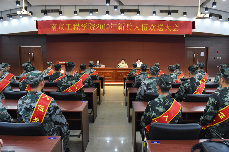9月9日下午,嘹亮的国歌、军歌声响彻至勤楼·行政中心二楼多功能厅,2019年新入伍学生欢送大会正在这里举行。校党委常委、副院长张仰飞,江宁区人民武装部部长翟朋上校出席大会并讲话。校人武部负责人、各二级学院(中心)学生工作负责人、学工办主任、征兵工作联系人、江宁区人民武装部孙剑、入伍学生家长、学生代表参加大会。