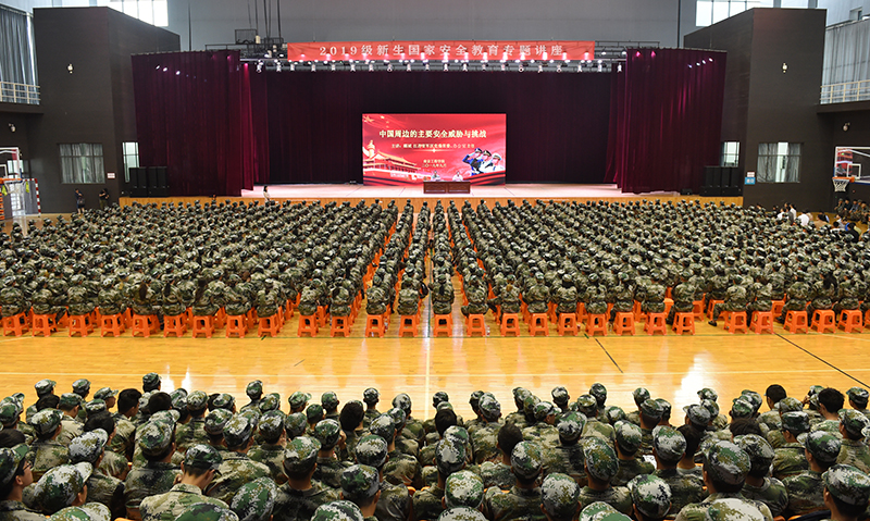 人武部负责人、各学院(中心)学生工作负责人、全体辅导员、军事课教师、3500余名2019级新生同学共同聆听了郦主任的精彩讲座。