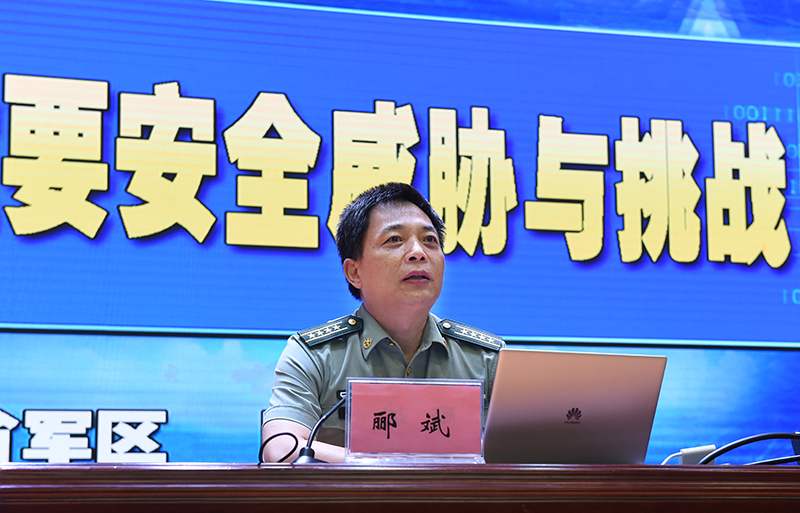 郦斌主任的讲座题目为《中国周边的主要安全威胁与挑战》,他以精炼的语言,从印度、南海、台海和美国四个方面重点分析介绍了我国周边的安全现状、面临的威胁与挑战。他结合贯彻落实习近平总书记关于国家发展、国家安全等方面的重要讲话精神,结合十九大报告精神,从全局高度,以图文并茂的形式深入分析了当前我国所面临的周边安全形势,对我国面临的安全威胁与挑战进行了具体而深刻的阐述。他告诉同学们,新时代,机遇与挑战并存,需要更多优秀人才投身于国家安全事业,为实现强国梦强军梦贡献自己的力量。他希望同学们把对祖国的热爱体现在每一滴奋斗的汗水里中、每一步前进的足迹中。
