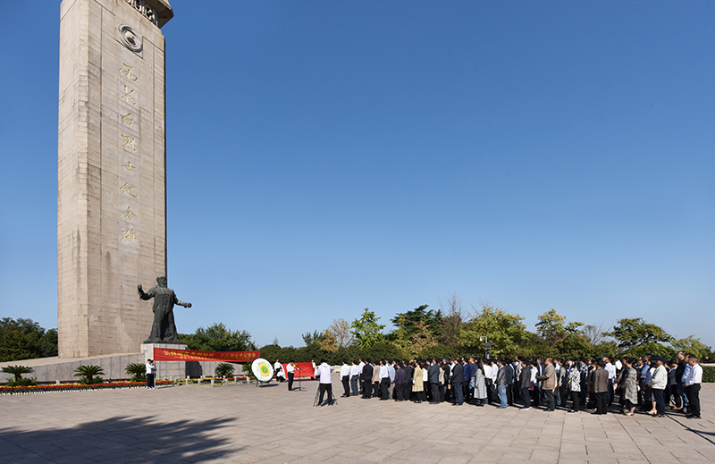 在庄严肃穆的雨花英烈纪念碑前,参加活动党员为革命先烈敬献花圈、集体默哀,深切悼念为革命事业、为国家献出生命的革命先烈。校党委书记史国君带领全体党员重温入党誓词,党员们面对鲜红的党旗庄严承诺:“我志愿加入中国共产党,拥护党的纲领……”誓词铿锵,回荡在每一位党员的心间。