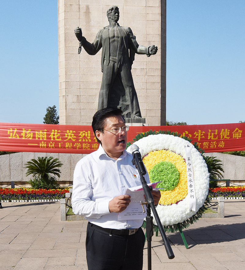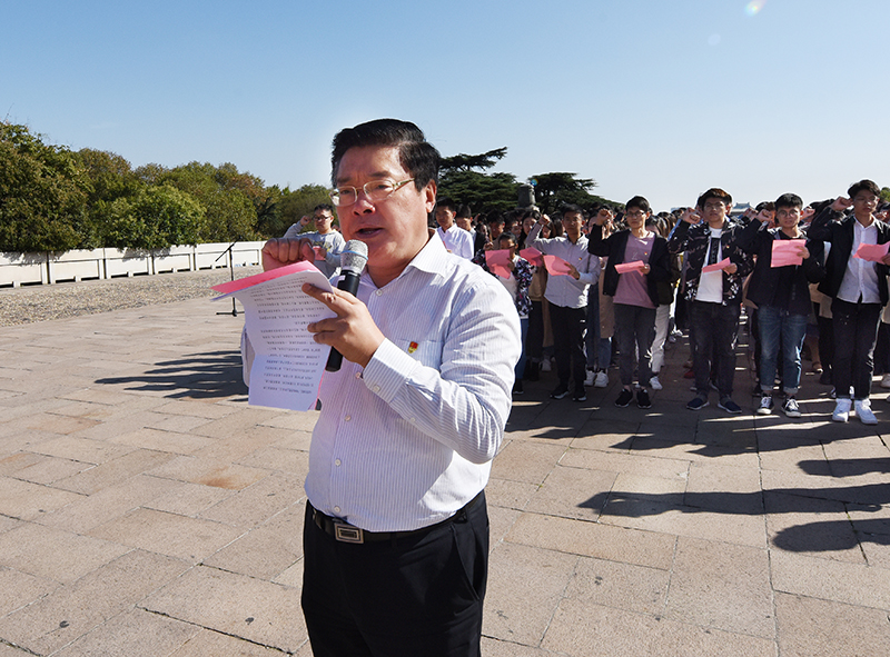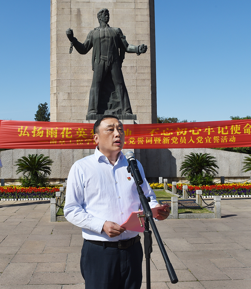 10月15日下午,威尼斯官网组织处级以上党员领导干部和教工、学生新党员等近300人赴雨花台开展“不忘初心、牢记使命”主题教育重温入党誓词暨新党员入党宣誓活动。党委副书记、院长史金飞主持活动。