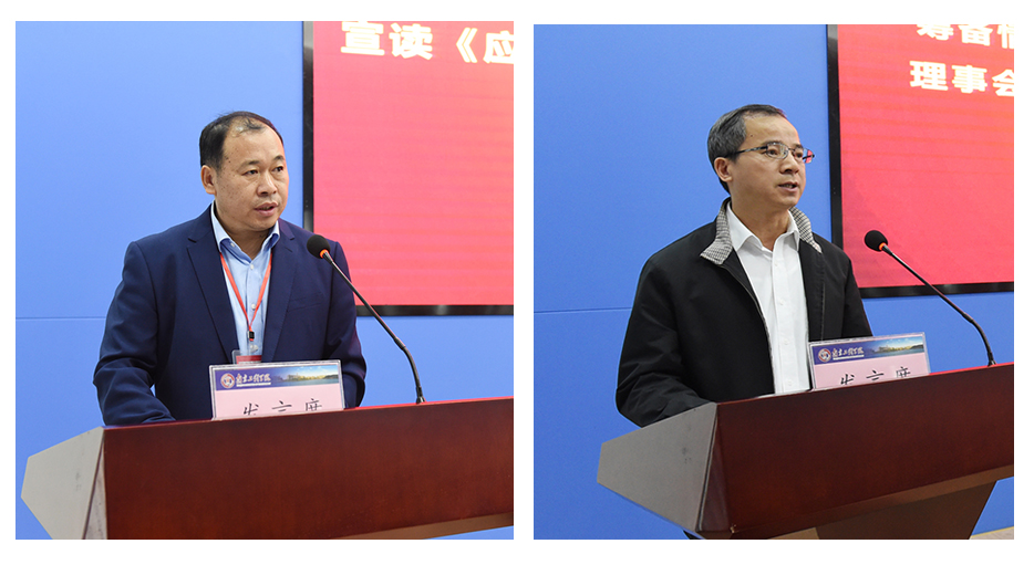 江苏省高等教育学会秘书长吴立保宣读江苏省高等教育学会应用型本科院校研究会成立批复,威尼斯官网党委常委、副院长郑锋代表筹备组作筹备工作介绍、理事会人员构成说明、《工作条例》制定说明和研究会筹备期间形成的《一流应用型本科院校建设与发展“南京共识”》。