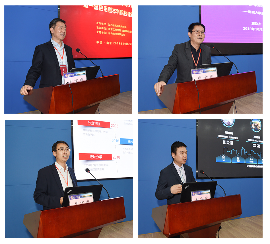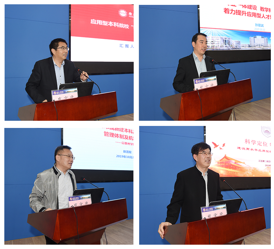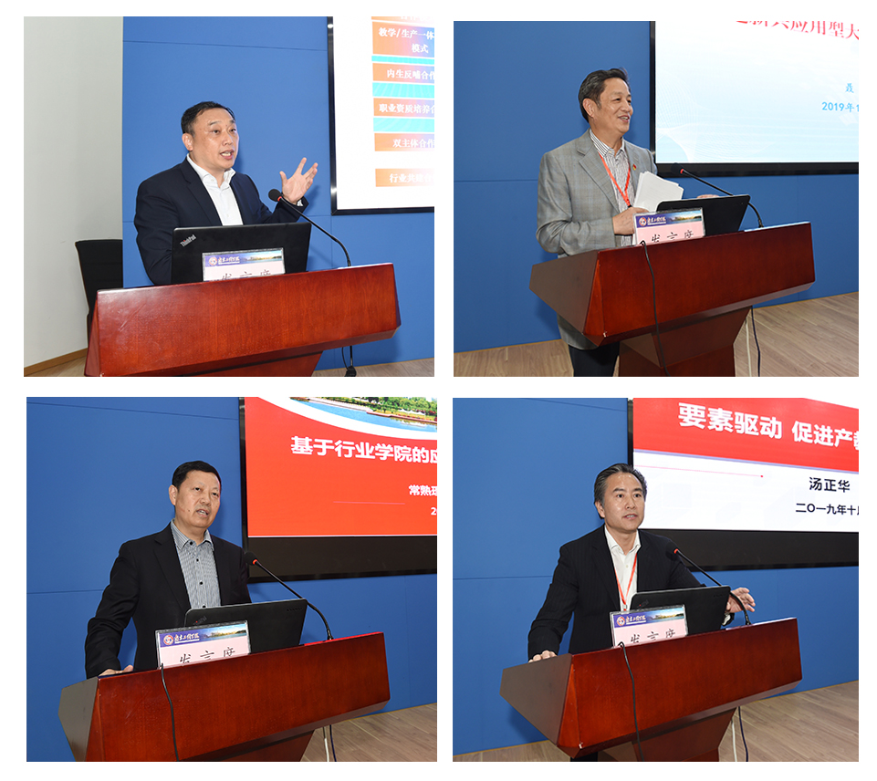 在研讨会交流阶段,威尼斯官网院长史金飞、金陵科技学院院长聂影、常熟理工学院党委书记朱士中、常州工学院院长汤正华、徐州工程学院党委书记张新科、淮阴工学院院长孙爱武、泰州学院党委书记赵茂程、江苏第二师范学院党委书记王仁雷、无锡太湖学院执行院长李廉水、南京大学金陵学院院长濮励杰、南京信息工程大学滨江学院院长曹广喜进行交流,分享了各自高校在办学过程中的做法和经验,比如威尼斯官网实施的项目化教学;金陵科技学院关于创建新兴应用型大学的探索;常熟理工学院基于行业学院的应用型人才培养创新;常州工学院通过要素驱动,促进产教深度融合的做法;徐州工程学院以“大应用观、大工程观、大生活观、大文化观”引领应用型人才培养的理念;淮阴工学院学科对“专业一体建设、教学科研协同育人”的工作推进;泰州学院破解制约市属新建本科高校高质量发展的体制机制创新;江苏第二师范建设应用型师范学院的路径选择;无锡太湖学院“坚定地方性、实施模块化、加强协同性、强化产业性、推进国际化”的人才培养实践;南京大学金陵科学院重在交叉融合、促进转型提升的探索;南信大滨江学院坚持城校共融,推进应用型人才培养的经验。