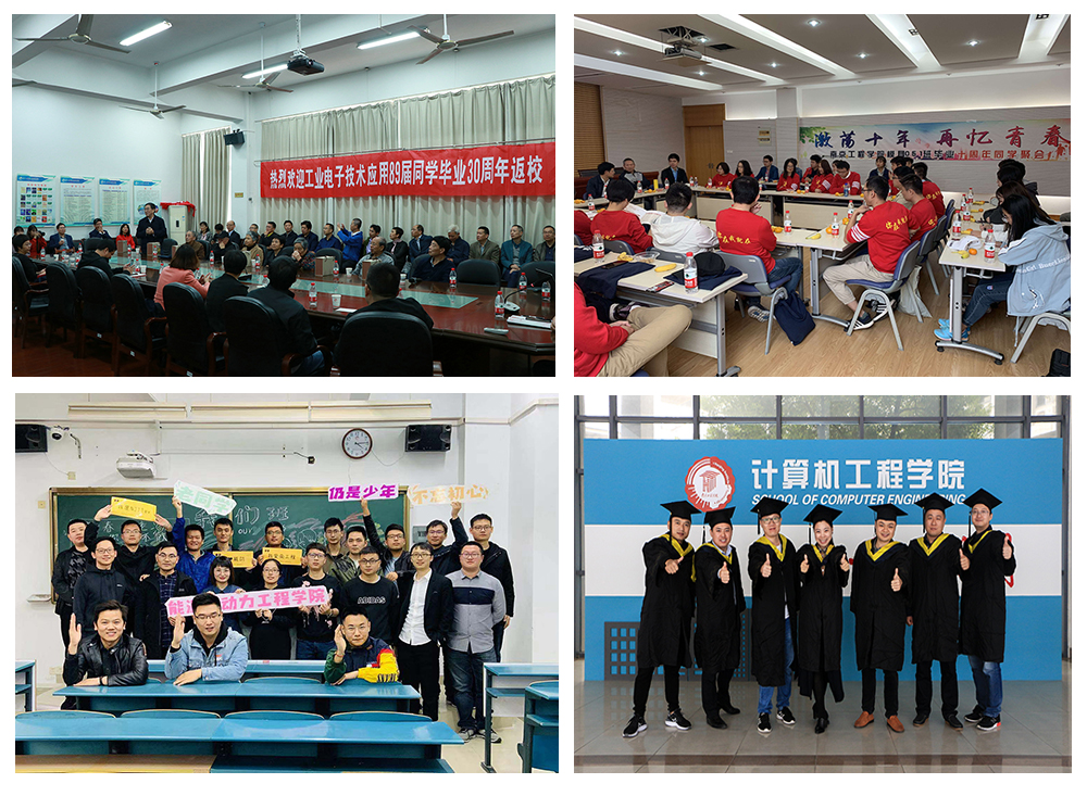 在机械工程学院、材料科学与工程学院、能源与动力工程学院、电力工程学院、环境工程学院、人文与社会科学学院、外国语学院等举办的校友报告会和座谈会现场,校友代表纷纷与老师和学弟学妹们分享自己的青春故事与成长经历。自动化学院、艺术与设计学院、汽车与轨道交通学院等带领校友们参观了实验室、工作室,并来到教室再上一节课,老师和校友们共忆青葱岁月,重温校园时光。信息与通信工程学院、环境工程学院等学院的老师和校友们来到天印湖畔的校友林,校友们一起将专属名牌挂到认养的校友树上,并在树下合影留念。计算机工程学院、建筑工程学院等则邀请校友们来到学海湾,重新穿上学士服,再拍一张“毕业照”。经济与管理学院、工业中心等学院举办了校友篮球赛,他们以球会友,带领校友们重温昔日美好的青春记忆。