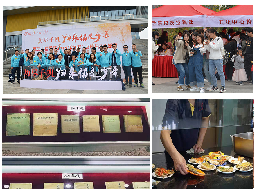 返校日活动当天,学校还推出了小公交校园游活动,重启校园寻梦之旅;校友们品尝了学校以天印湖的鲜鱼为主打的“怀旧午餐”,重温南工程味道;图书馆举办的“年代的记忆”旧书展,让回忆定格在那些求学的日子里。校园里,精心设计的海报、签名墙以及各学院策划的丰富多彩的活动,和着校友们灿烂的笑容,构成了一幅幅美好而温馨的画面。