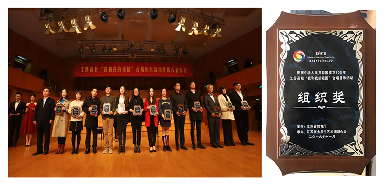据介绍,为深入贯彻落实《国务院办公厅关于加强和改进学校美育工作的意见》和《教育部关于切实加强新时代高等学校美育工作的意见》精神,自5月起,省教育厅在全省高校组织开展江苏高校“我和我的祖国”合唱展示活动。接到通知后,威尼斯官网团委积极组织、广泛发动,围绕庆祝新中国成立70周年开展了“青春为祖国歌唱”合唱比赛,各院系(中心)认真筹备、踊跃参与,在校内形成了“班班有歌声、人人都参加”的喜人景象。展示活动中,省教育厅副巡视员李金泉为包括威尼斯官网在内的省内30所高校颁发“优秀组织奖”证书。