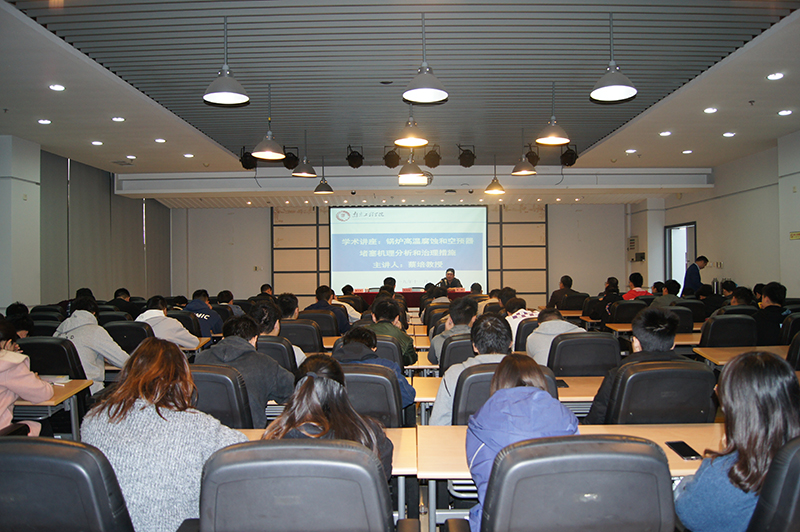 聘任仪式后,蔡培作了题为《锅炉高温腐蚀和空预器堵塞机理分析和治理措施》的学术报告,他从火电厂生产中出现的实际问题出发,结合负责的两个科研项目详细分析了解决现场工程实际问题的方法和成效,给参会师生带来了电力行业新技术的分享。