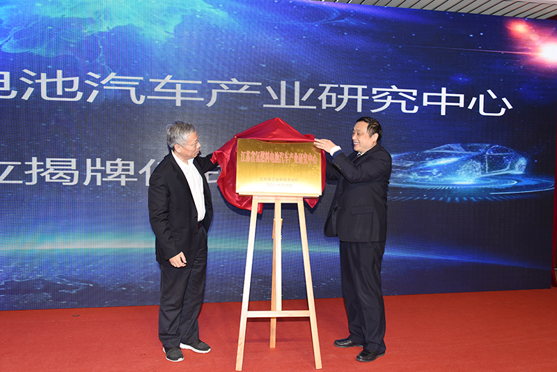 会上,周毅彪厅长和史金飞院长共同为“江苏省氢燃料电池汽车产业研究中心”揭牌。