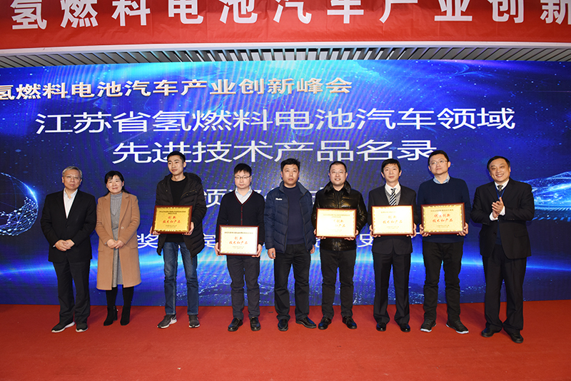 “江苏省重点新能源汽车企业(氢燃料电池汽车领域)重大创新技术和产品目录(2019年)”在峰会上正式发布。苏州弗尔赛能源科技股份有限公司、江苏国富氢能技术装备有限公司、南京汽车集团有限公司汽车工程研究院和江苏超力电气有限公司四家企业的五项先进产品获奖。周毅彪厅长和史金飞院长共同为企业家代表颁发了奖牌和证书。