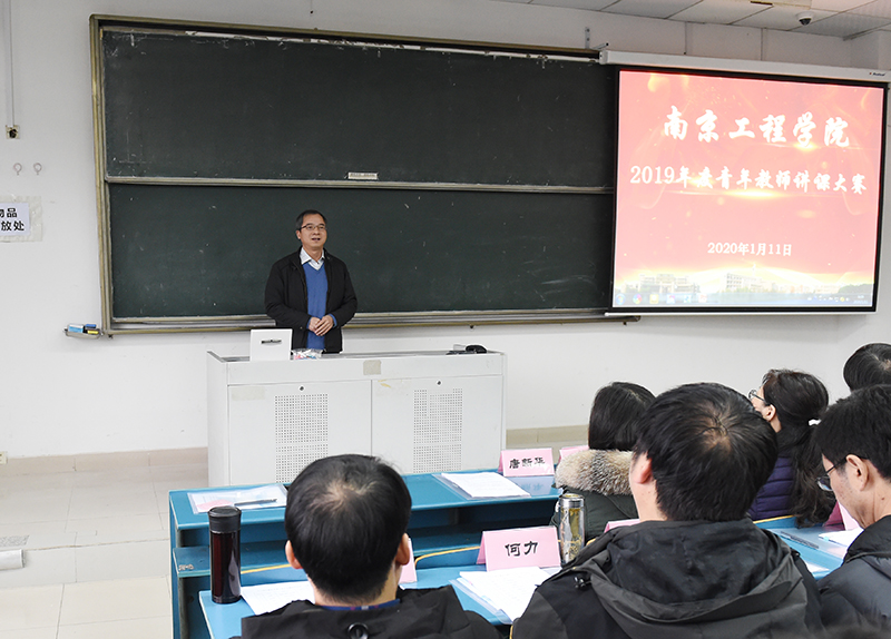 1月11日,2019年度青年教师讲课大赛总决赛在教学楼西馆C101举行。经各教学单位初赛、评审委员会审核选拔推荐的32名青年教师参加了角逐。校党委常委、副院长郑锋,教务处、校工会、教学质量管理办公室和人事处负责人来到现场观摩比赛,现场还吸引了来自全校近百名师生参与观摩。学校特邀南京大学吕林海,东南大学董志芳,南京航空航天大学李韪韬3位专家和6位校内专家担任评委,决赛成绩由专家评审并参考观摩师生评分意见综合得出。