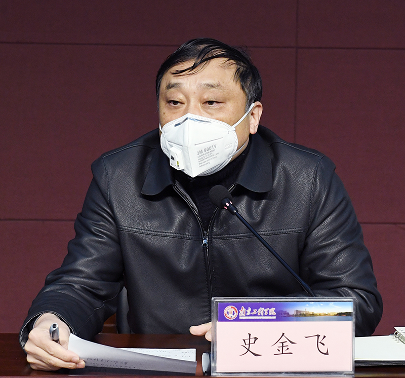 史金飞院长针对学校前期疫情防控工作,结合检查指导学校后勤保障处、门诊部等部门疫情防控工作情况,对学校做好疫情防控各项保障工作再一次做了详细部署和具体要求。史校长强调,全校上下要立即行动起来,认真落实好这次会议精神,形成以个人为点,以部门、单位为线,以学校为面的疫情防控工作机制。其次,要抓住关键环节,重视师生返校,严格落实疫情防控措施,做实做细开学后的防疫预案和学校整体工作安排。在会议之前,史金飞院长还与相关部门负责人察看了学校隔离场地和门诊部相关工作的准备情况。