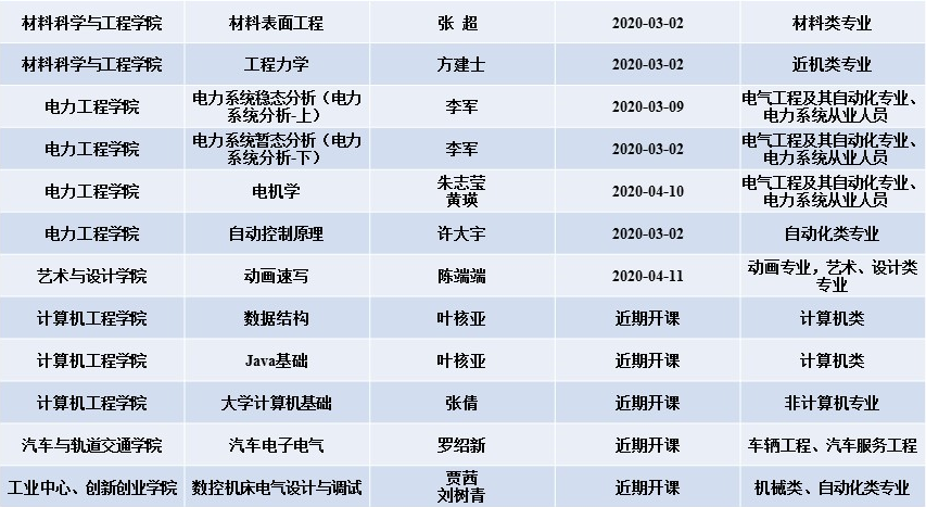 日前,威尼斯官网发挥百年传承、工科特长、行业特色优势,汇聚学校优质在线开放课程,通过“爱课程(中国大学MOOC)”平台,面向社会免费开放含国家及省级精品在线课程在内的25门课程(其中,省级及以上课程11门),发力在线教学,支持疫情防控期间“停课不停教、停课不停学”。具体开课情况如下: