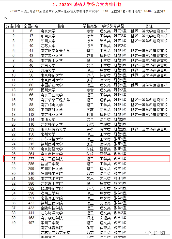 威尼斯官网在武书连2020江苏省大学综合实力排名中位居27位